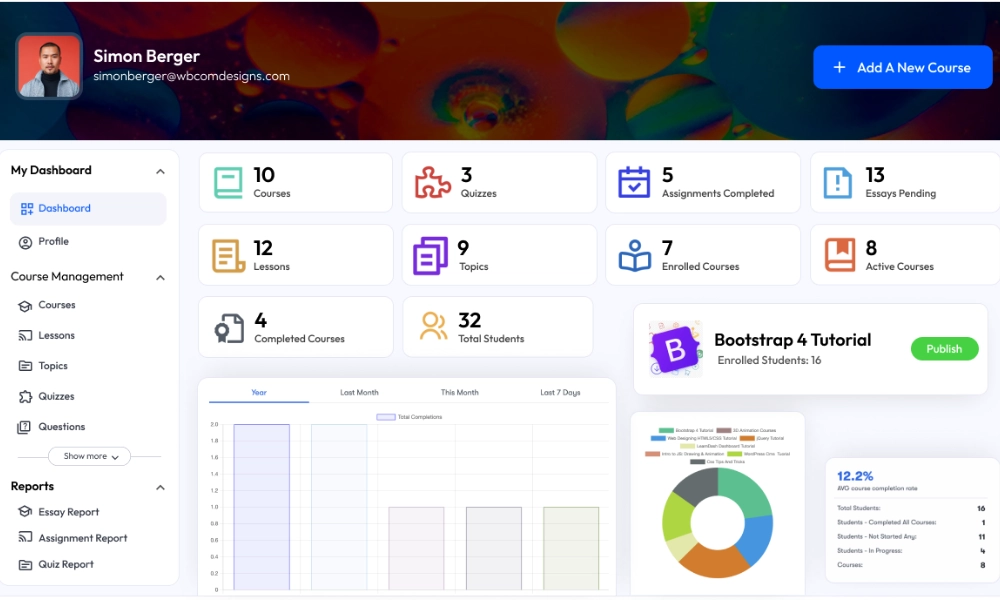 Generate tailored reports to analyze learner performance, course effectiveness, and overall progress.